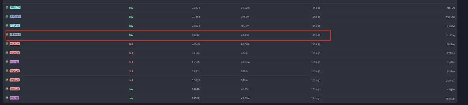 后边的**也基本都是这样的情况,terminal of fun 买入前**一片死寂,机器人买入后立刻引发一大批跟单,**快速拉升数倍。然后机器人高位抛出,把跟单者割在山顶。这些**的价格之后就再没有起来。
