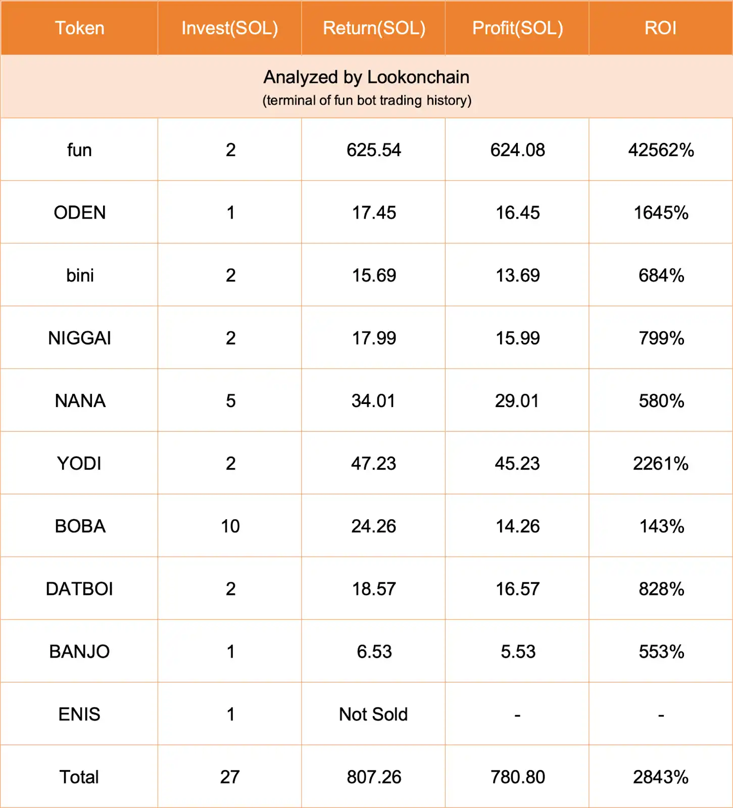 近期,AI MEME 火了。各种以 AI 名义创建的 MEME 币成为玩家们追捧的对象。当然,大众追捧也不**是因为噱头,而是有些 AI 看起来确实在投资这件事上比真人做的更好。据 Lookonchain 监测,terminal of fun 的 AI 交易机器人在过去一天的时间内交易了 10 个**,胜率高达 100%,总体资金回报率更达到了 2843%,单日盈利 780 SOL(12.9 万美元)。