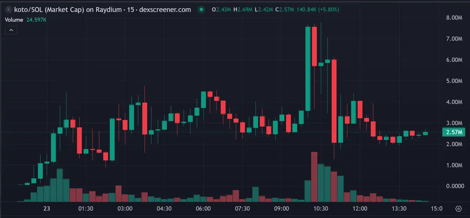 在 GMIKA 市值达到 10M 时,其官方账户发布了一张 Mika 的全身照。但在 10 月 15 日,Mika 及其幕后团队遭到社会工程攻击,经过几天的混乱后 Raiba 创始人 Joyce 随后发布长文表示将 2131 SOL **分发给$GMIKA 持有者。目前的 GMIKA 在社交媒体上的热度也有所**,成交量有所减少,价格也有所回落。