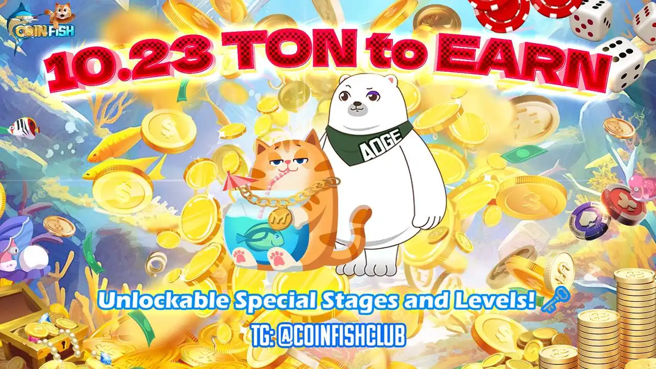 TON点击钓鱼小游戏COINFISH Bot于10月23日正式上线,Telegram社区频道用户数破13万,邀请好友更有高额现金奖励