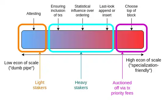 核心难题是:**留在质押者手中的有意义的权力,**都可能与「MEV 相关」。我们希望一组高度去**化的参与者拥有尽可能多的权力;这意味着 (i) 将大量权力交到质押者手中,以及 (ii) 确保质押者尽可能去**化,这意味着他们几乎没有规模经济驱动的整合动机。这是一个难以驾驭的紧张局面。