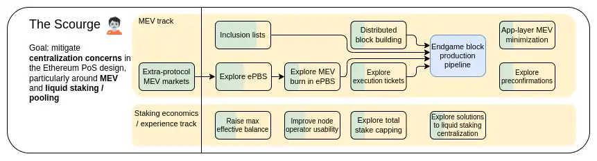 · 尽量减少以太坊质押层的**化风险(特别是在区块构建和资本供应方面,又称 MEV 和质押池)