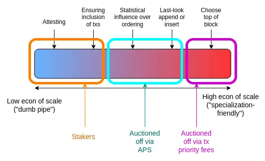 除了这两个极端之外,还有一系列介于两者之间的设计。例如,你可以拍卖一个在区块中追加交易纳入的角色(但无权重新排序)。
