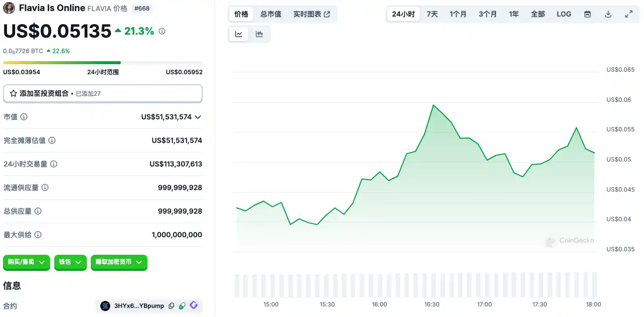 5.某 Smart Money 在内盘阶段花费 1 SOL 买入 FLAVIA,回报率超 2700 倍