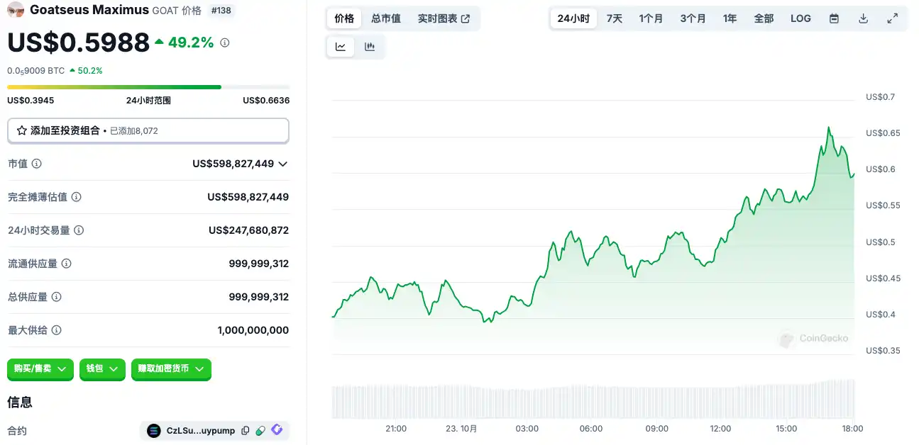1.GOAT 成为 pump.fun 平台**市值超过 5 亿美元的 MEME 币