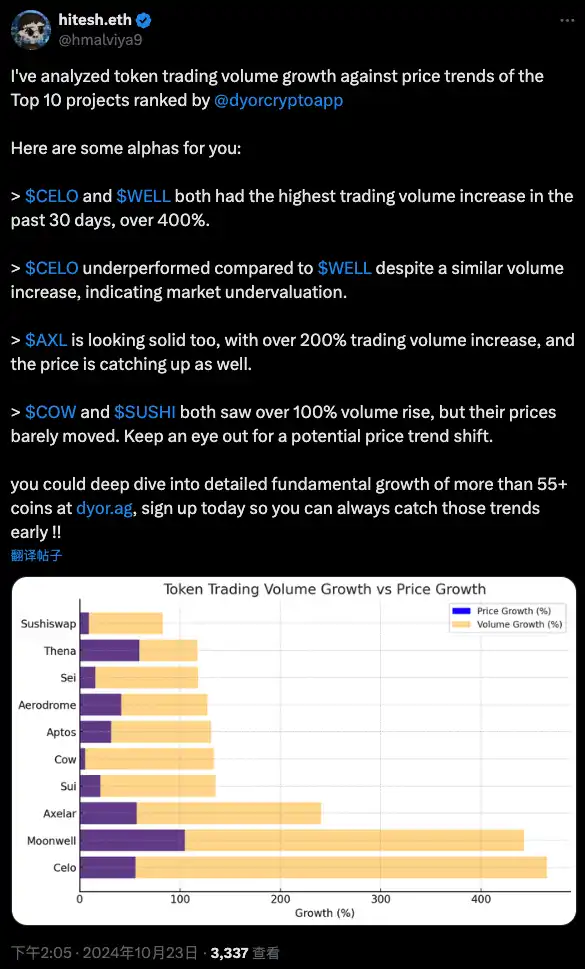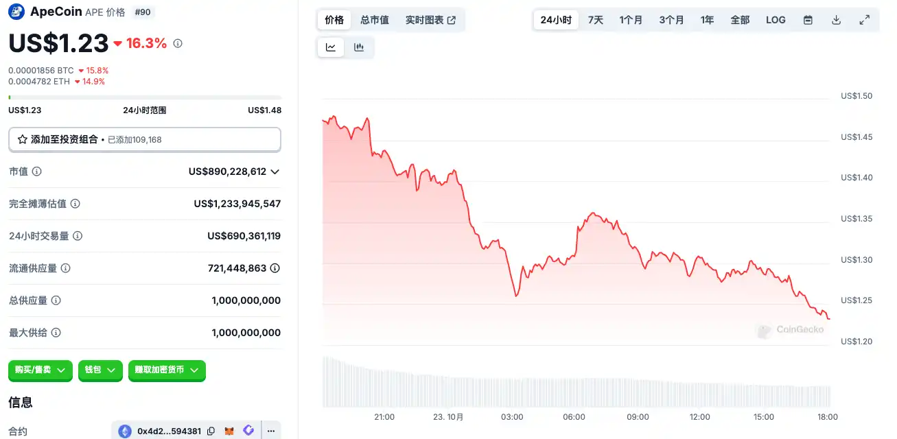 10 月 23 日**波动情况,按 24 小时交易量筛选并排列