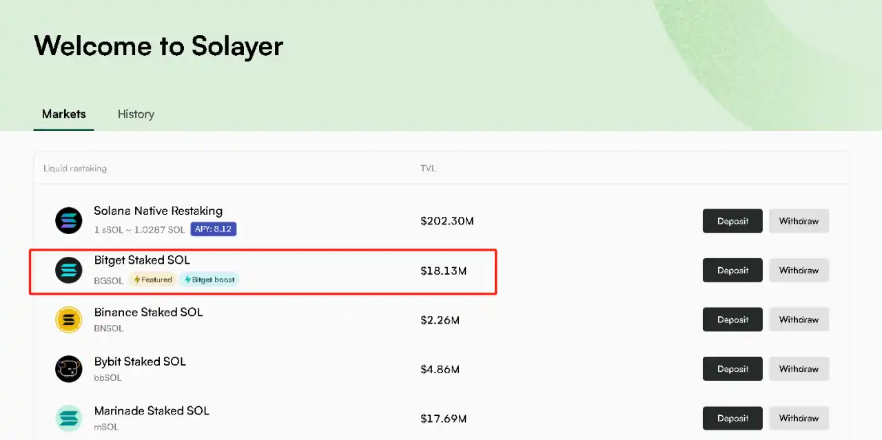BGSOL 是一种流动性质押**,同样也是 Bitget 与 Solayer 合作推出的一种更具灵活性的流动性质押解决方案。用户可以在平台通过质押 SOL 或者交易对直接购买等方式获得 BGSOL。