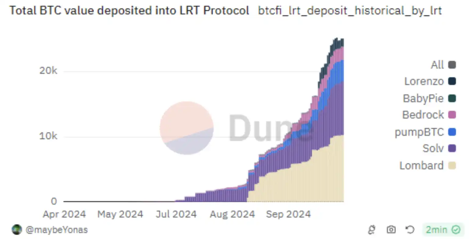 Pendle 目前占据了 BTCfi 总 TVL 的三分之一以上,推动了多个 BTCfi 协议的增长,如 Lombard、Solv Protocol、Bedrock、pumpBTC 和 Corn 等。