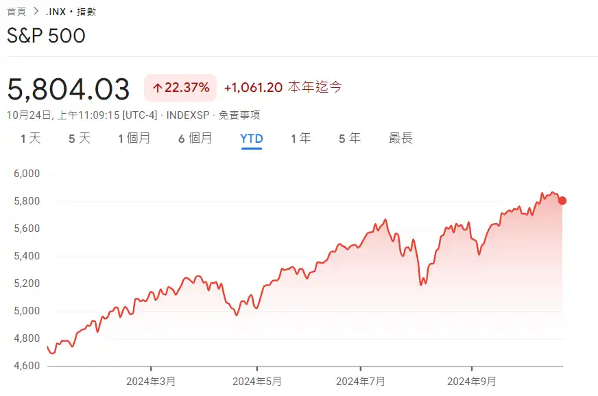 受惠于人工智慧(AI)技术的深入发展,以及美国联准会(Fed)开启货币宽松政策周期,美股今年可谓迎来了一场真正的「长牛」:不仅苹果、辉达、特斯拉股价在今年持续攀升,标普 500 指数更在 10 月 18 日创下了今年第 48 次历史新高,直逼 6,000 点大关,年内至今涨幅高达 22.6%。