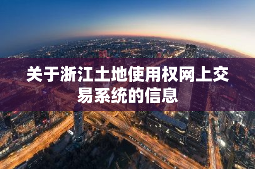 感谢您阅读本篇对浙江土地使用权网上交易系统的详细介绍,如果你对还不够了解,想进一步学习关于浙江土地使用权网上交易系统的知识,可以在本站首页搜索你想知道的!