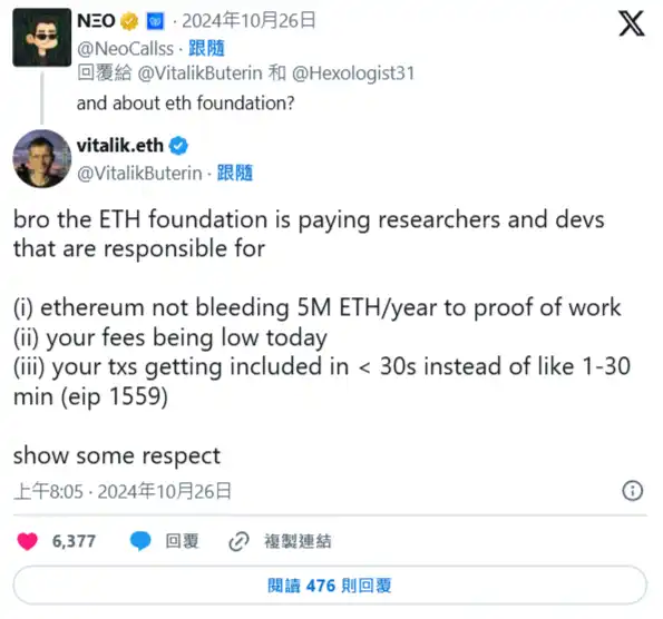 V 神反击批评以太坊基金会言论