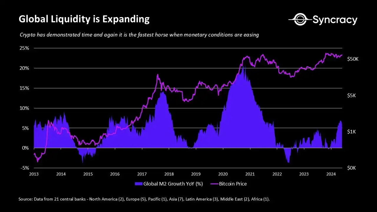 加密经济一次又一次地证明了,当货币环境放宽时,它是最快的马。Syncracy 认为这一次不会有太大不同,再加上机构化和监管透明度的**。然而,今天与以往周期之间的关键区别在于,回报不太可能由主题趋势驱动,而更有可能呈现出分散的状态。