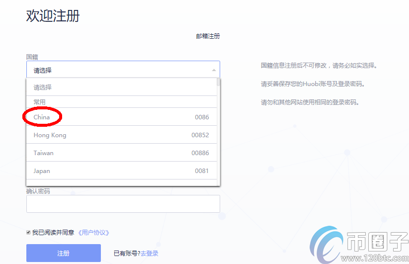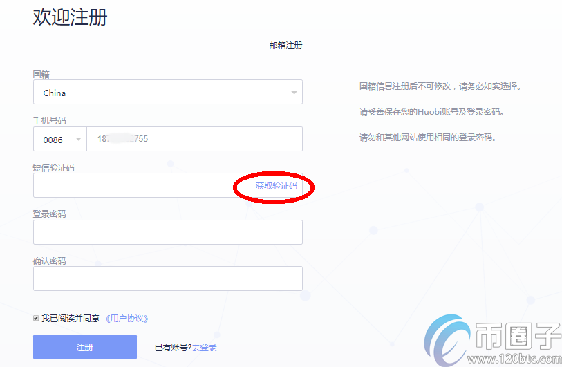 一、注册账户,以火币网为例: