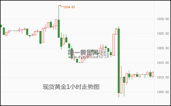 本交易日现货黄金开于1911.00美元/盎司,**上探至1912.46美元/盎司,**触及1909.74美元/盎司,截至发稿暂报1911.91美元/盎司,涨幅0.05%。