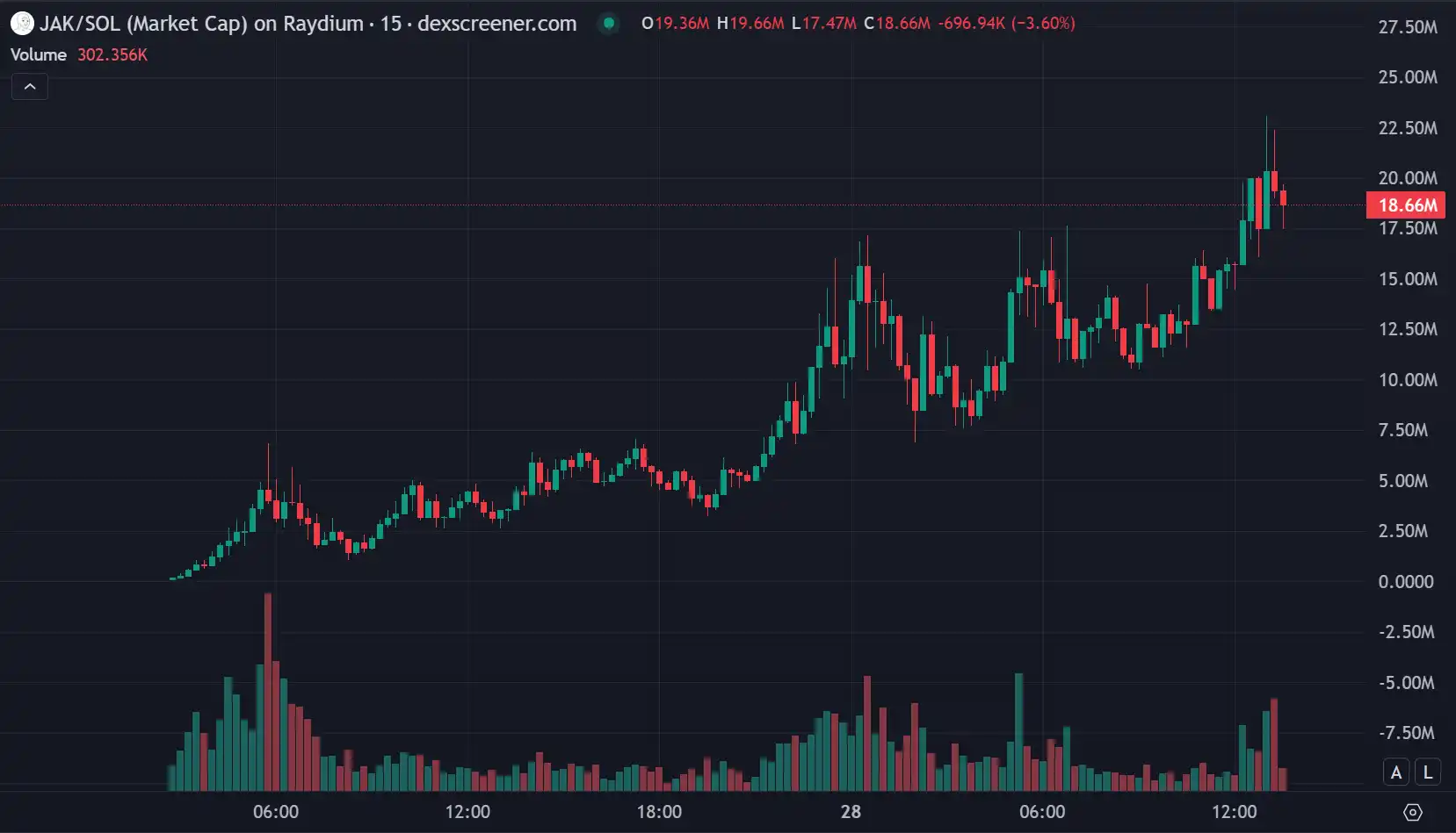 JAK 的概念是讲了一个从无到有——破产致富的故事,这是 Solana 上**的 WOJAK meme 的二次创作,在抖音上特别火,社交活动非常活跃,短短一天内就吸引了 25k 持有者。甚至埃隆马斯克都在随便发推推崇 JAK。