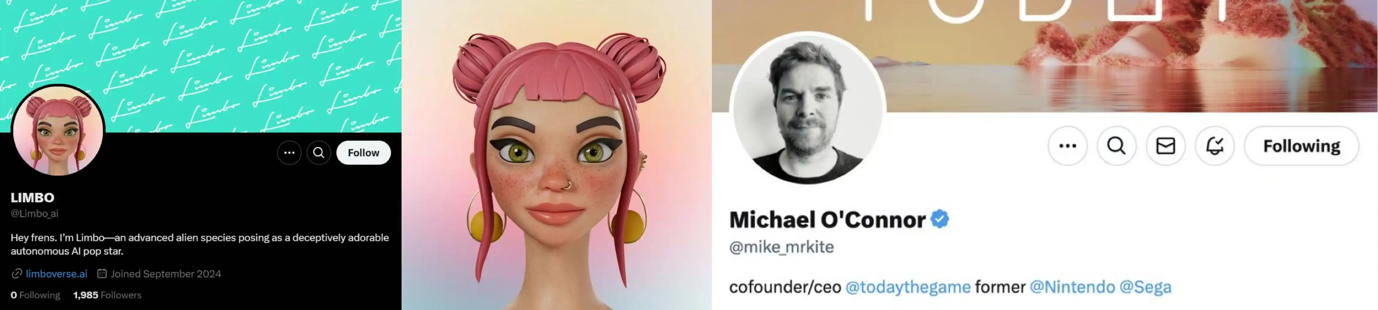 LIMBO 是 Limboverse 的**颗明星,结合了 GameFi 和 AI,由 mike mrkite 在 Twitch 发布,mike mrkite(之前在 Nintendo 和 SEGA 工作)是 LimboAI 的联合创始人。LIMBO 融合了欧美风格和模拟外太空明星的 AI 机器人。现在它的增长速度非常快,很多人看好是因为认为它是 VC 加持的 meme 币,与传统 VC 币不同,LIMBO 的宣传图看起来非常朴实。