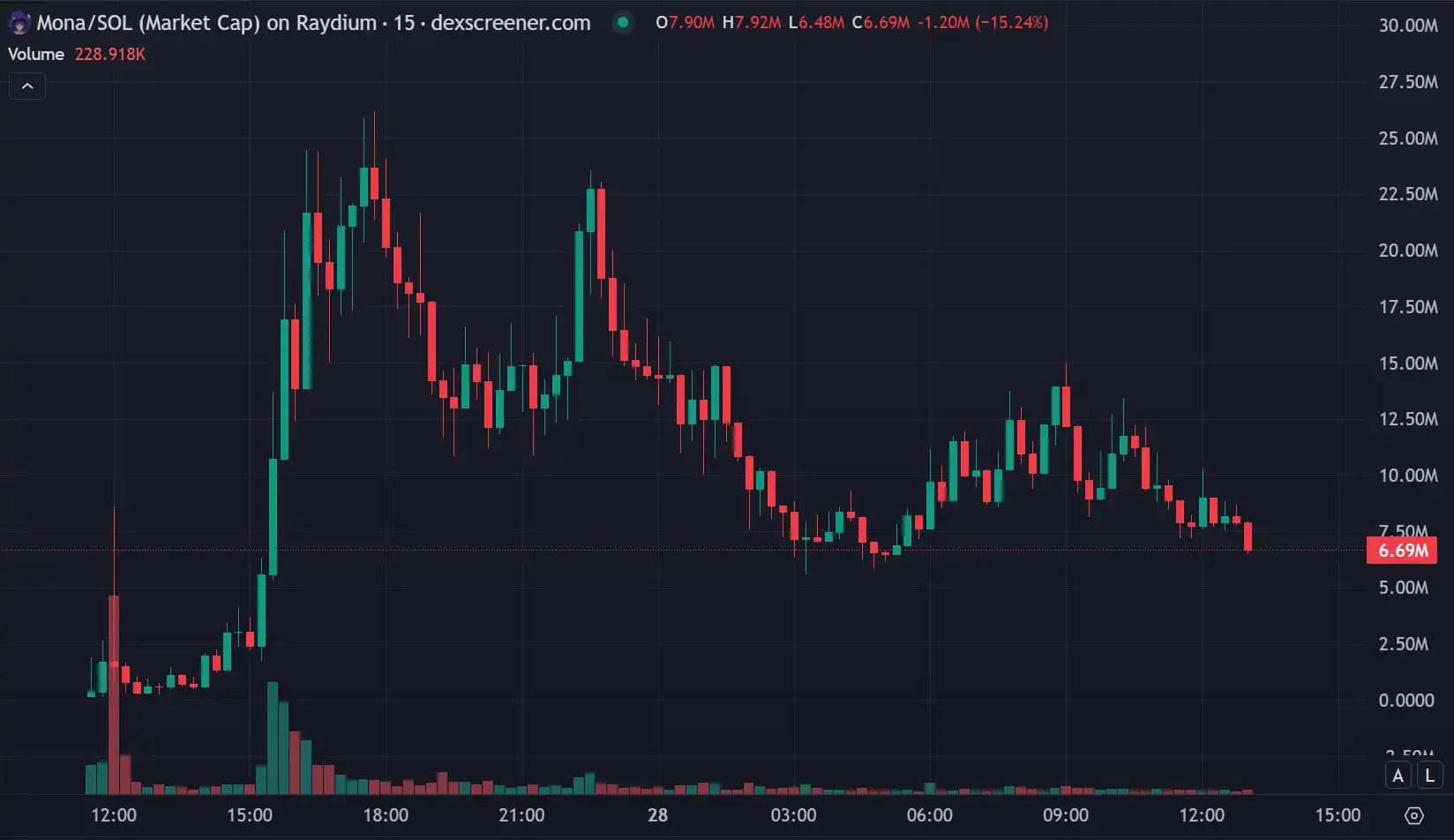 最近,AI 赛道火热,各种币种纷纷冒出来,特别是 Solana 上的 meme 币,热度飙升,而在 Base 上的生态也开始逐渐崭露头角,新的项目和**持续升温就是牛市的一场狂欢。就在这股潮流中,今日 Rps 五个小时冲击 480M 的市值爆拉 500 倍的涨幅,Mona 在乌龙事件下跌被澄清后币价立刻**,**达到 26M,低点爆拉 130 倍。