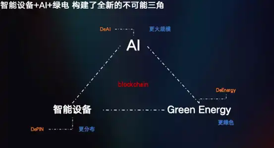 绿色算力底层资产、绿色算力 RWA、新金融体系都离不开「绿电 AI 算力 智能设备」的新不可能三角。如图所示:
