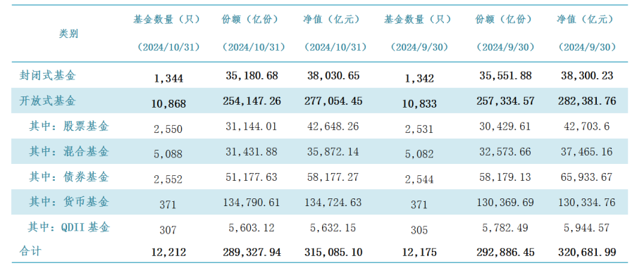 截至10月底我国公募基金规模为31.51万亿元
