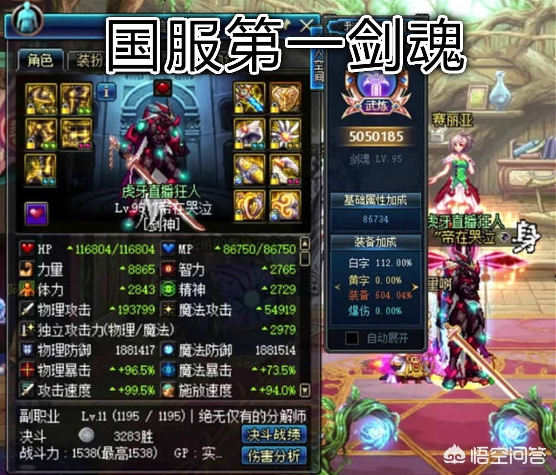 DNF的主播狂人,他的剑魂职业,目前在国服,应该是**剑魂,装备只比旭旭宝宝的国服**红眼,少一件增幅17而已,面板高达8865点!
