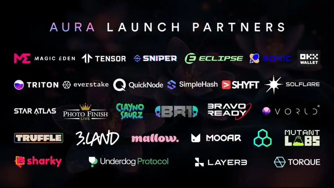 而产品预告发布时,Metaplex 也列出了支持该产品的合作协议,不少是 Solana 生态的知名项目,它们也会是 Aura 未来的潜在用户。