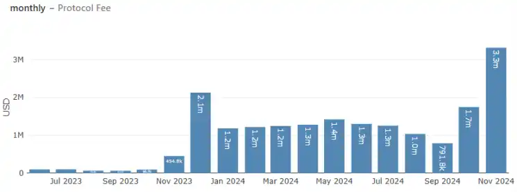 截至笔者撰稿日(2024.11.30),Metaplex 的月协议收入高达 330 万美金,同样创出历史新高。