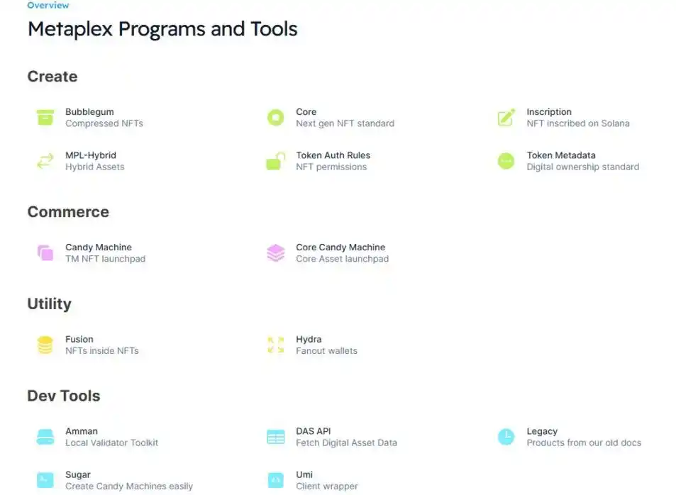 2.1 Metaplex 的产品矩阵