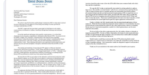3月15日财经报道,美国罗得岛州参议员Sen Jack Reed和加利福尼亚州参议员Senator Laphonza Butler联合致信美国SEC主席Gary Gensler,要求该机构介入,以确保经纪自营商向投资者提供有关BTC ETF时要进行适当信息披露,此外,Sen Jack Reed还呼吁美国SEC不要批准其他加密货币ETF。 信中解释称表示,虽然比特币市场表现出一些弱点,但相比其他加密货币都更加成熟和受到更严格的审查。无论比特币如何容易受到欺诈和操纵,其他加密货币受到不当行为影响的程度要大得多,其他加密货币的交易量或诚信度不足以支持相关的ETF。