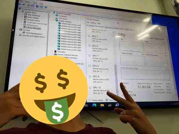 从截图可以看出,这台矿机满载时 10 块 RTX 3090 显卡的温度均低于 50℃,**温度为 41℃。