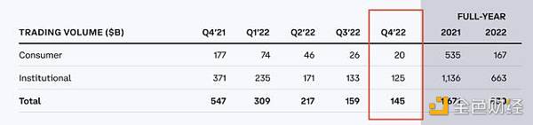 这一点从 Coinbase **季度财报(2022 Q4)可以看出: