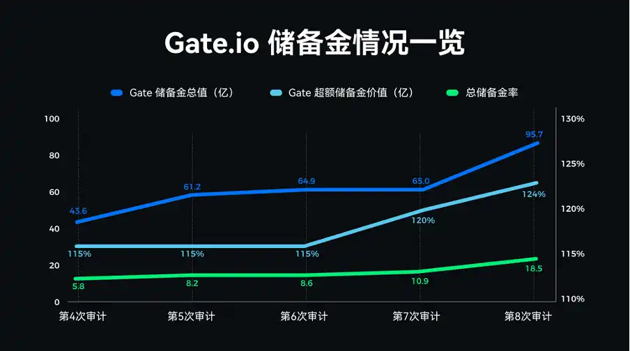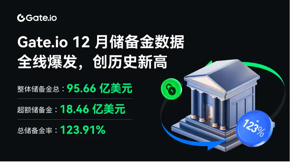 全线数据创新高:Gate.io 12月储备金总值达95.66亿美元,超额储备增幅68.89%