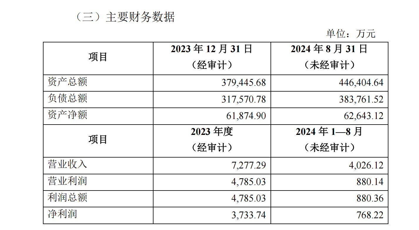 从财务数据来看,天津医药集团财务公司的盈利能力相对稳定,其业务覆盖集团内部企业,资产减值风险较小。公告显示,天津医药集团财务公司2023年度净利为3733.74万元,截至2024年8月31日,其资产净额已达6.26亿元,实现营收4026.12万元,净利768.22万元。以下是天津医药集团财务公司主要财务数据情况: