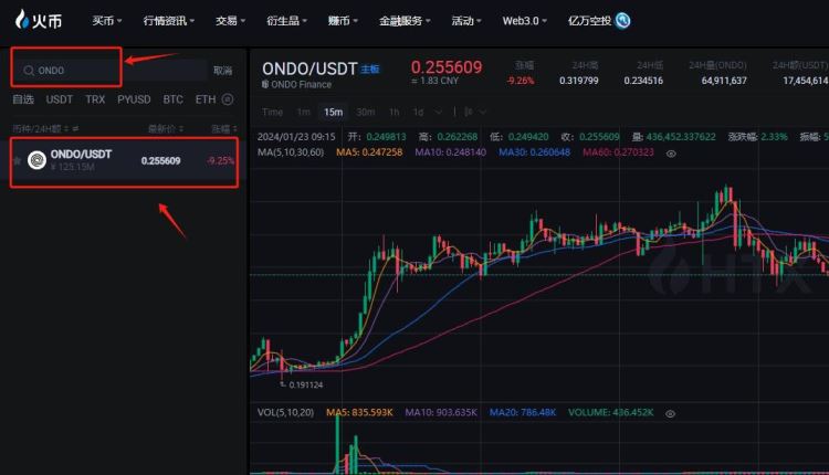 ONDO币购买和出售可以在上线的火币、芝麻开门、抹茶交易所、库币等16家交易所内进行,需要注意的是,ONDO币上线币安交易所的永续合约。下面是在火币交易所进行ONDO币的购买和出售: