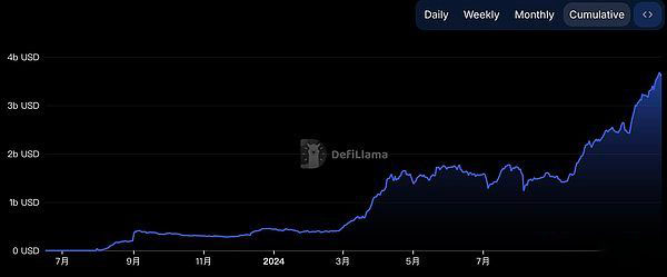 不仅如此,目前Base链的TVL量已经稳居以太坊Layer2的榜首。据 L2BEAT 数据,Base 链的 TVL 在近三个月增长迅猛,自 2024 年 3 月以来,其 TVL 增长了近六倍,从 13 亿美元增长到 76 亿美元。据DefiLlama数据显示,截至 2024 年 12月3 日,Base 链上的 TVL 已经突破了 36.53亿美元。