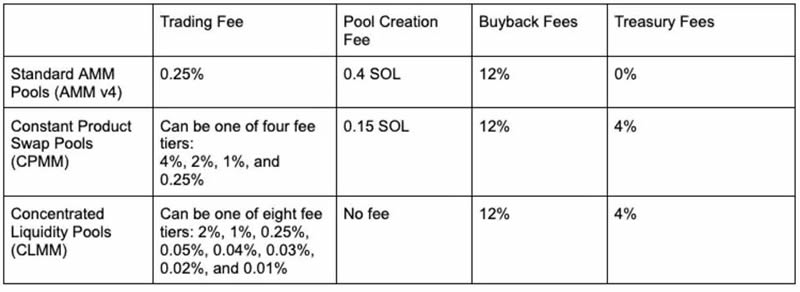 (图 1、Raydium 不同流动性池的收费标准,来源:Radyium: King of Solana DeFi)