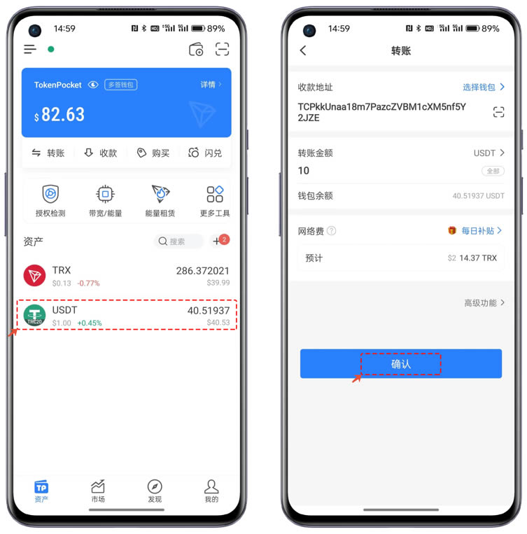 1、打开创建的波场多签钱包,选择需要转账的**,设置转账参数后,点击【确认】。