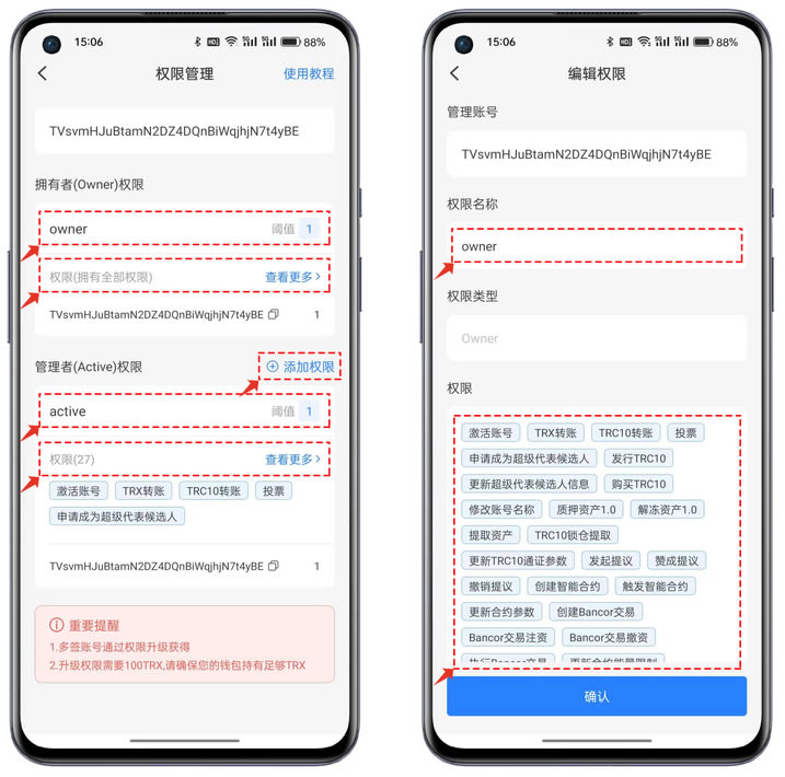 波场钱包权限设置教程