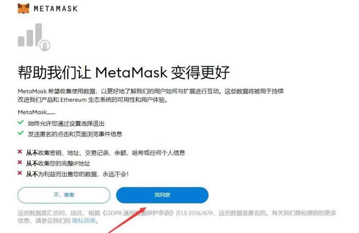 然后我们就可以开始注册MetaMask账户了,直接点击下方开始使用。