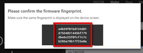 4.固件更新完成之后,页面会提示用户确认trezor设备的固件指纹。确认之后页面会提示“update was succes**ul(上传成功)”表示固件安装完成
