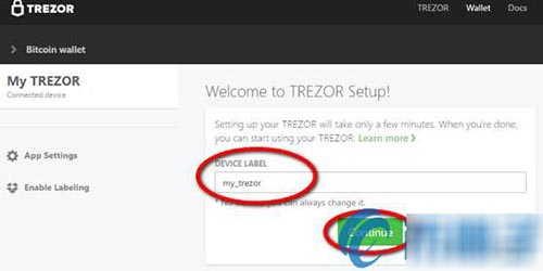 5.设置trezor设备标签,用户根据自己的喜好进行设置,并且随时可以改变它