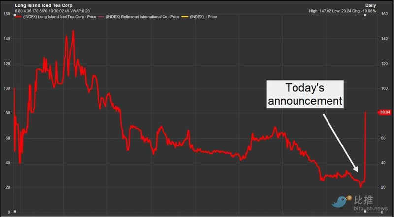 最**的例子是名不见经传的饮料制造商长岛冰茶(Long Island Iced Tea) 将自己更名为Long Blockchain,至少在最初取得了**性成果:在更名为加密货币后,其股价在一天内几乎上涨了两倍。涨幅未能持续,该股票后来被那斯达克摘牌。 (三人被美国证券交易委员会指控内线交易。)