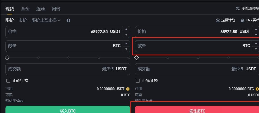 8、填写卖出数量,点击【卖出BTC】将BTC置换成USDT