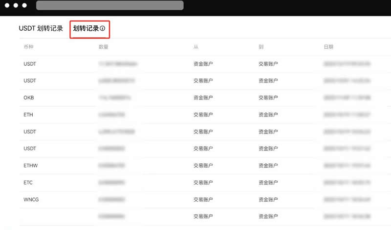 2、点击划转记录,就可以查看历史划转记录