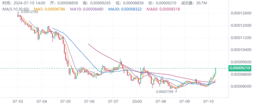 2024年7月3日:昨日老鼠币开盘于0.000131美元,随后在窄幅震荡中**触及0.000133美元,**点为0.000126美元。收盘时价格略有上涨,报0.00013美元,全天成交额达到5244.43万美元,市值进一步增长至1.3亿美元。