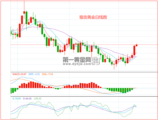 从日线图上看,MACD金叉,KDJ金叉,5日均线上穿21日均线,金价**了100日均线1951.89阻力,后市看涨信号有所增强,若能**2079-1892跌势的38.2%回撤位1963.93附近阻力,55日均线阻力也在该位置附近,则有望进一步试探50%回撤位1985.98附近阻力,5月24日触及的近两个月高点阻力也在该位置附近;短线的话,6月9日高点1972.85和1980关口附近也分别存在**的阻力