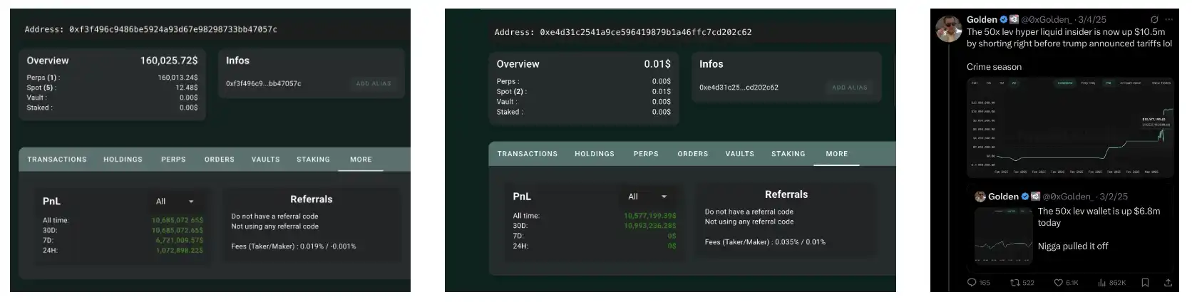 一名交易员在 2025 年 1 月至 3 月期间在 Hyperliquid 和 GMX 上开设了多个高杠杆头寸。