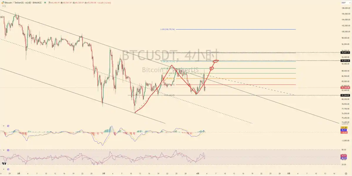 2)只有突破 91000 左右这个位置,反弹才可以看的更远。