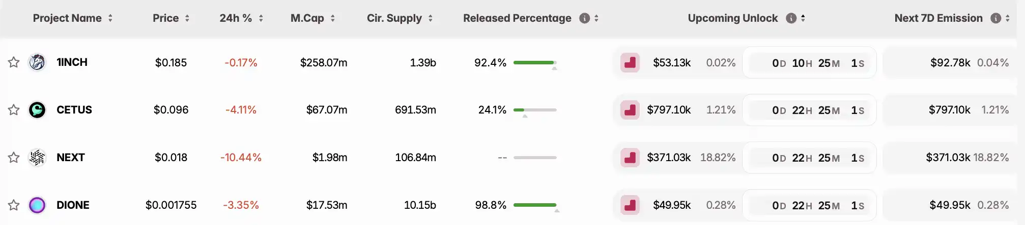每日市场整体资金热度(根据资金费率反映)与**解锁