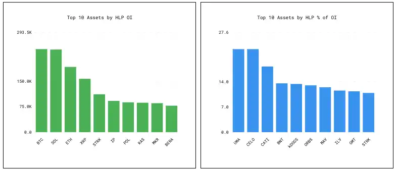 · 根据 HLP 的累计净头寸,计算 HLP 头寸占 Hyperliquid 总未平仓合约的比例。