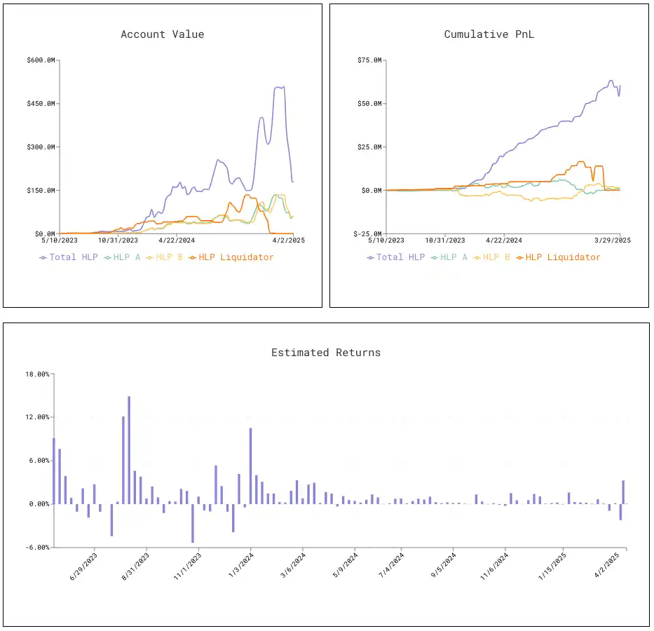 这些指标分析 HLP 及其三个子金库(HLP-A、HLP-B 和清算金库)的财务表现,推导 HLP 及各子金库 TVL 的表现。